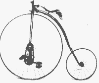 Der Mechaniker Viktor Renard aus Paris konstruierte zum Beispiel ein Hochrad von 65 kg Gewicht mit einem Vorderraddurchmesser von drei Metern! (Bild links) |