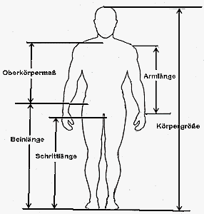 Nehmen Sie ein Rollmaß zur Hand und stellen Sie sich gerade hin. Bitten Sie jemanden, Ihnen bei der Abmessung zu helfen. Das Radgeschäft Ihres Vertrauens wird diese Tätigkeit sicher gerne für Sie übernehmen. Messen Sie die links angezeigten Bereiche ab und schreiben sie auf. Vergleichen Sie die Maße mit untenstehender Tabelle und erhalten Sie damit Ihre optimalen Rahmenmaße.