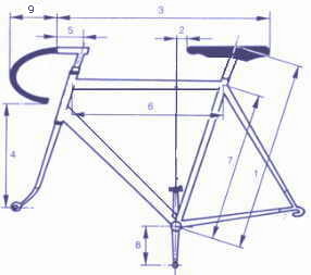 Auf dem Bild auf der linken Seite sehen Sie alle wichtigen Messpunkte für Ihr optimal angepasstes Fahrrad. Die wichtigsten sind in Fett gehalten