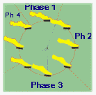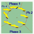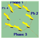 Phase 1: der oberste Sektor mit dem oberen Totpunkt. Der Druck erfolgt nach vorne.
